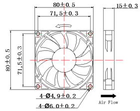 8015 尺寸/Size 80X80X15mm DC Axial Flow Fan