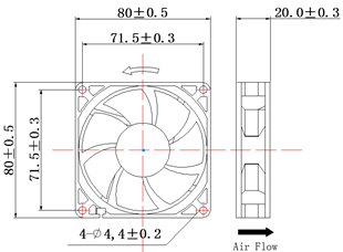 8020 尺寸/Size 80X80X20mm DC Axial Flow Fan