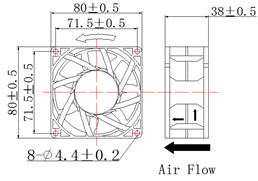 8038 尺寸/Size 80X80X38mm DC Axial Flow Fan