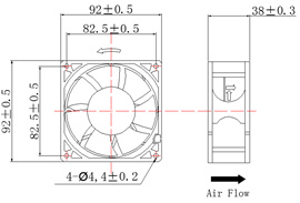 9238 尺寸/Size 92X92X38mm DC Axial Flow Fan