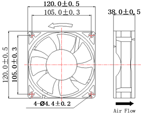 12038 尺寸/Size 120X120X38mm DC Axial Flow Fan