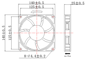 14025 尺寸/Size 140X140X25mm DC Axial Flow Fan