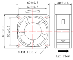 6030 尺寸/Size 60X60X30mm AC Axial Flow Fan