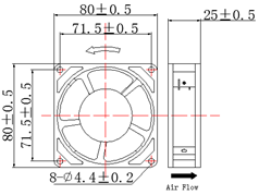 8025 尺寸/Size 80X80X25mm AC Axial Flow Fan