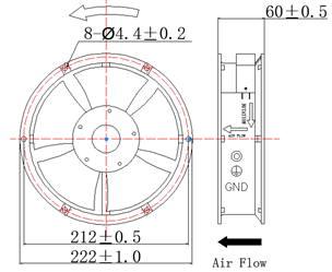 22060 尺寸/Size ¢220X60mm AC Axial Flow Fan
