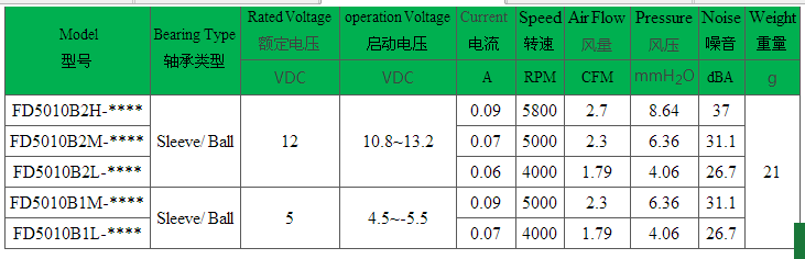 5010尺寸/Size 50X50X10mm DC Blower Fan