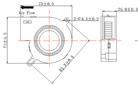 7025 尺寸/Size 70X70X25mm DC Blower Fan