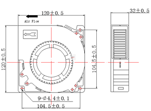 12032 尺寸/Size 120X120X32mm DC Blower Fan