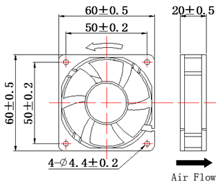 6020 尺寸/Size 60X60X20mm DC AxialFlowFan